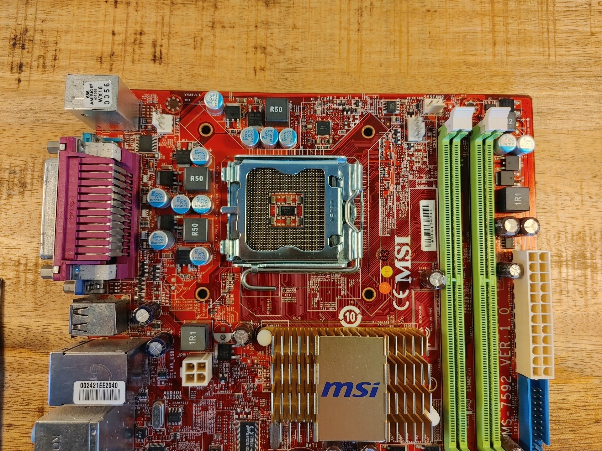 Het moederbord is in goede staat.